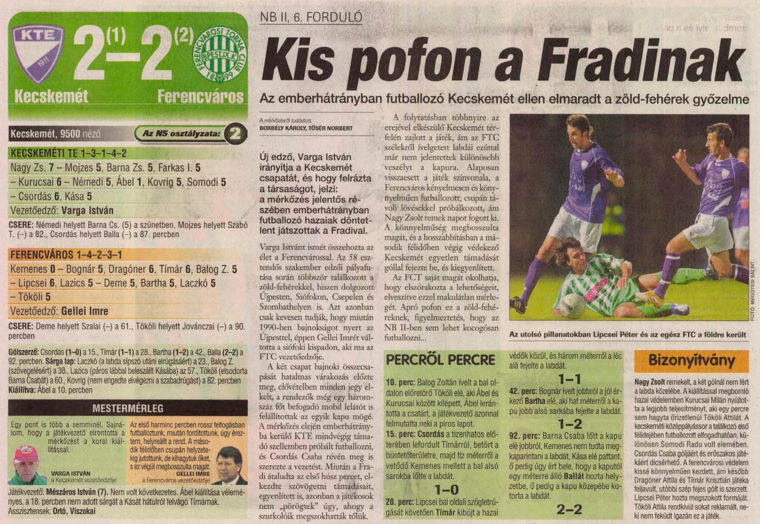 2006.IX.16. Kecskeméti TE – Ferencváros: 2-2