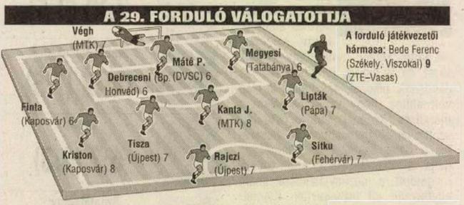 Gól: Lipcsei (28. – 11-esből), Bajevski (90.) illetve Megyesi (31.), Deme (35., 45.)