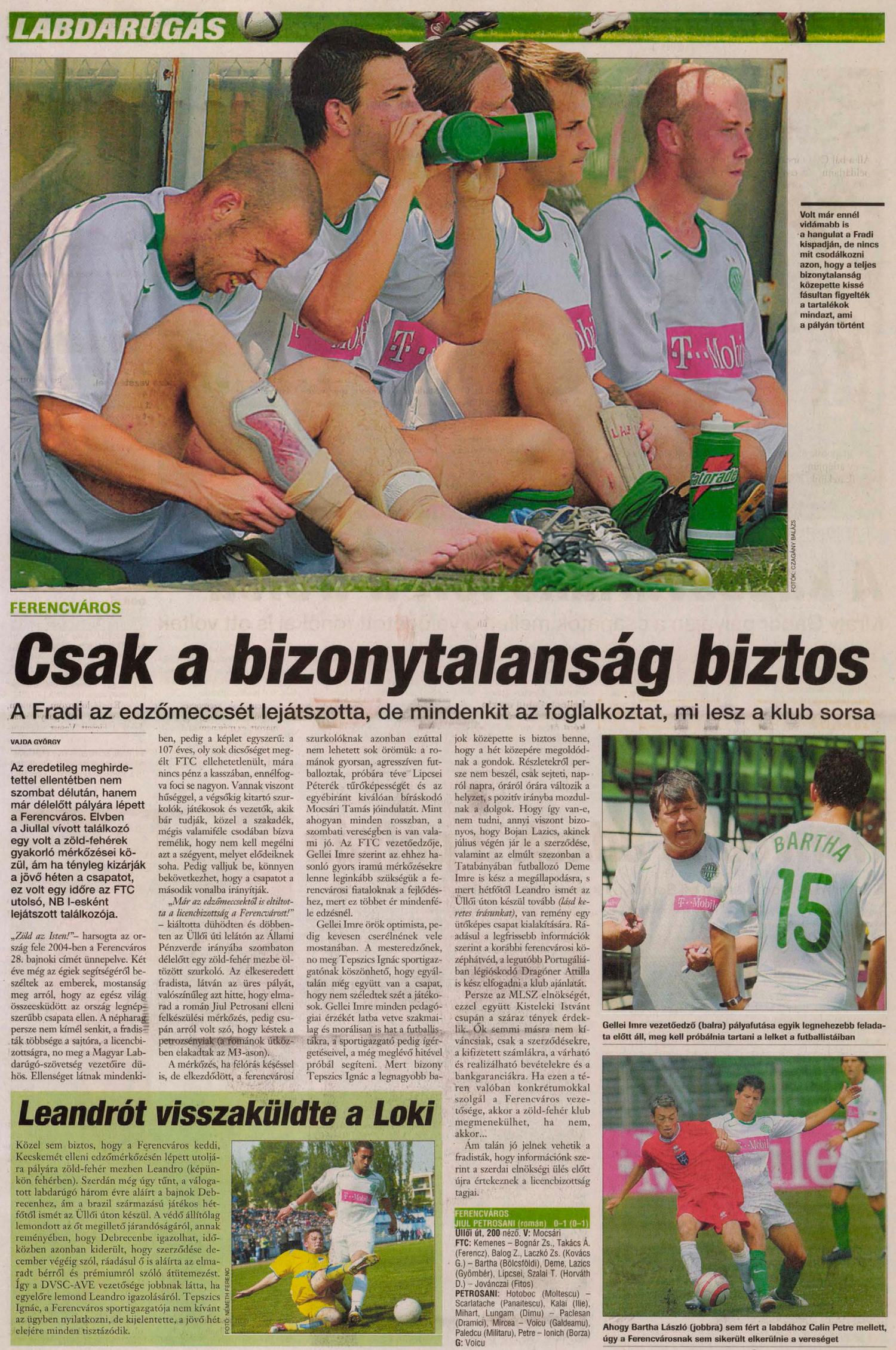 2006.VII.15. Ferencváros – Jiul Petrosani: 0-1