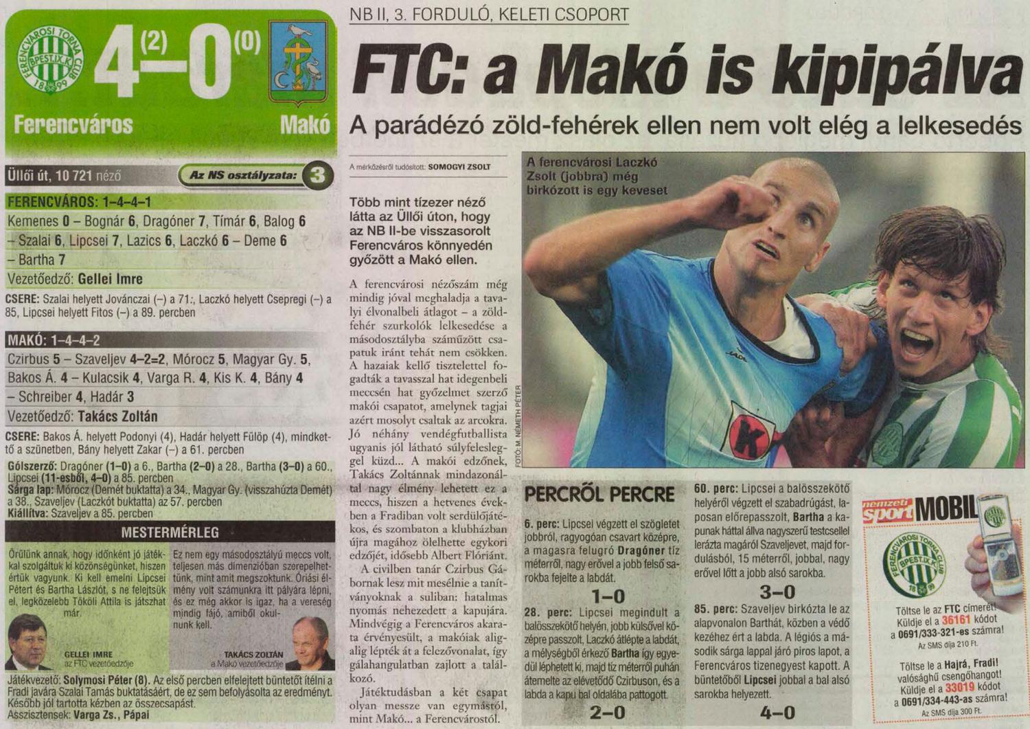 2006.VIII.26. Ferencváros – Makó: 4-0