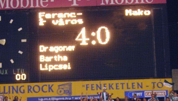 ftc.hu: Csapatunk tizenkétezres közönség előtt nagyszerű hangulatú találkozón 4-0-ás győzelmet aratott Makó ellen.