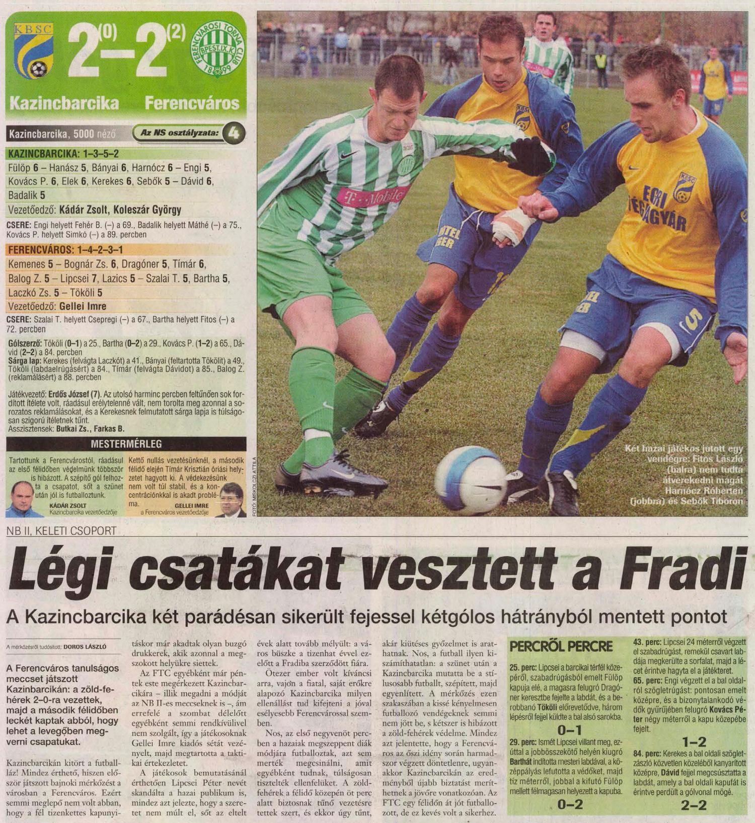 2006.XI.4. Kazincbarcika – Ferencváros: 2-2