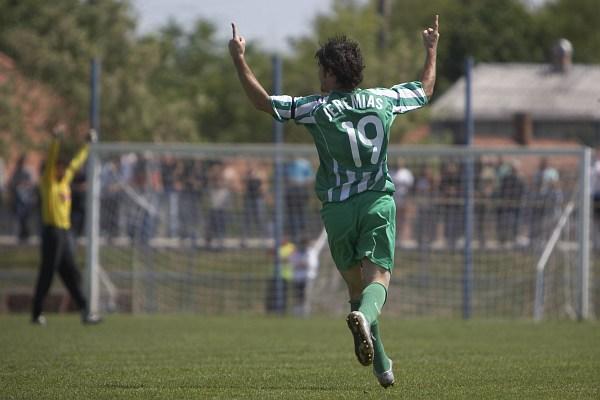 A gólszerző Németh kap túlzott gólörömért lapot.