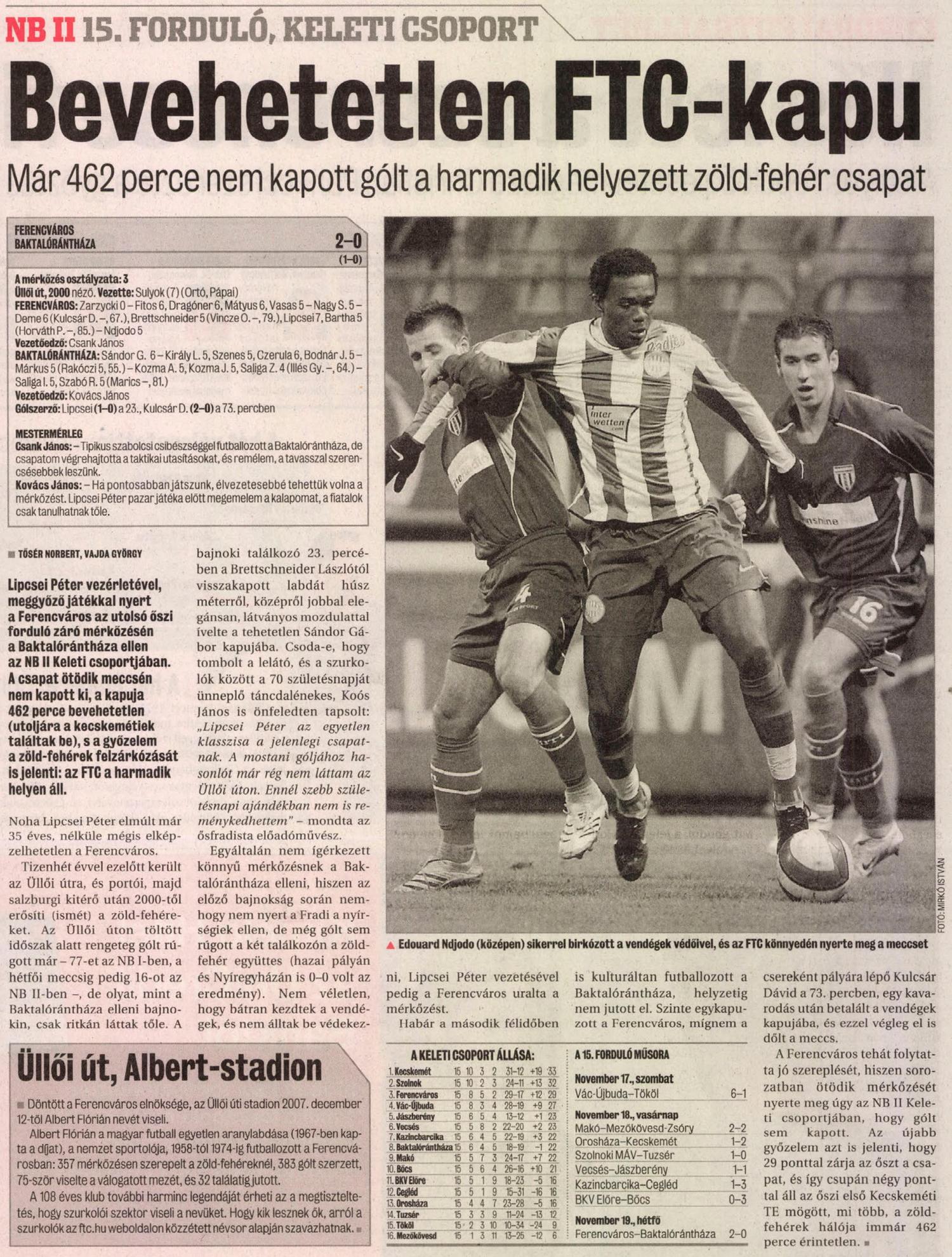 2007.XI.19. Ferencváros – Baktalórántháza: 2-0