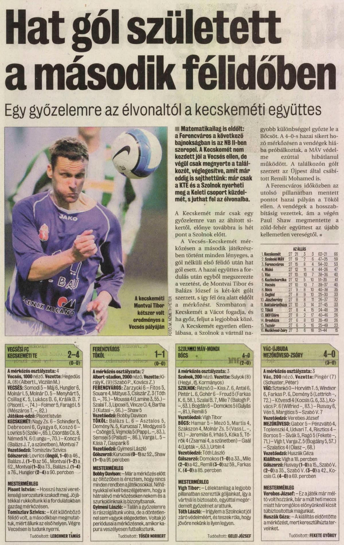 Csapatunk hazai pályán csak 1-1-es döntetlent játszott a Tököllel. Kurucsai góljával az 52. percben a vendégek szerezték vezetést, Shaw az utolsó pillanatokban egyenlített. A Kecskemét és a Szolnok is nyert, így már matematikailag sem juthatunk fel.