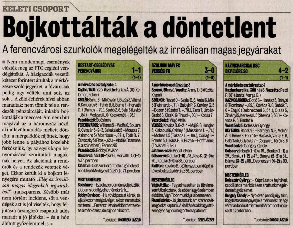 Cegléd, 1.400 néző, vezette: Farkas Ádám (Kelemen, Fehér)