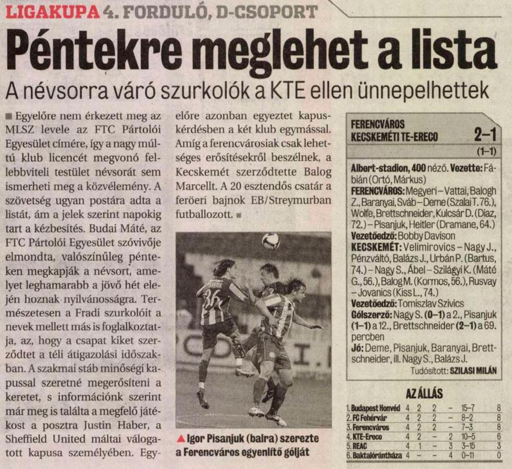 2008.XI.6. LK, Ferencváros – Kecskeméti TE: 2-1