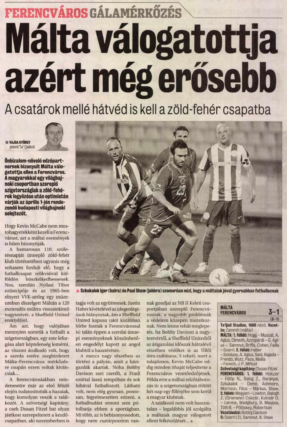 A napokban Máltán edzőtáborozik a labdarúgó-másodosztály Keleti csoportjának listavezetője, a Ferencváros. S ha már ott gyakorol Bobby Davison legénysége, meg is küzdött a máltai válogatottal.