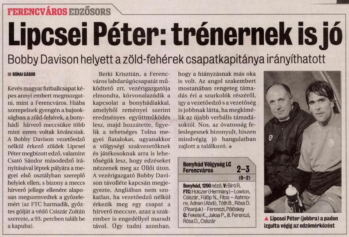 Érdekesség, hogy a zöld–fehéreket ezen a meccsen megbízott edzőként Lipcsei Péter irányította.