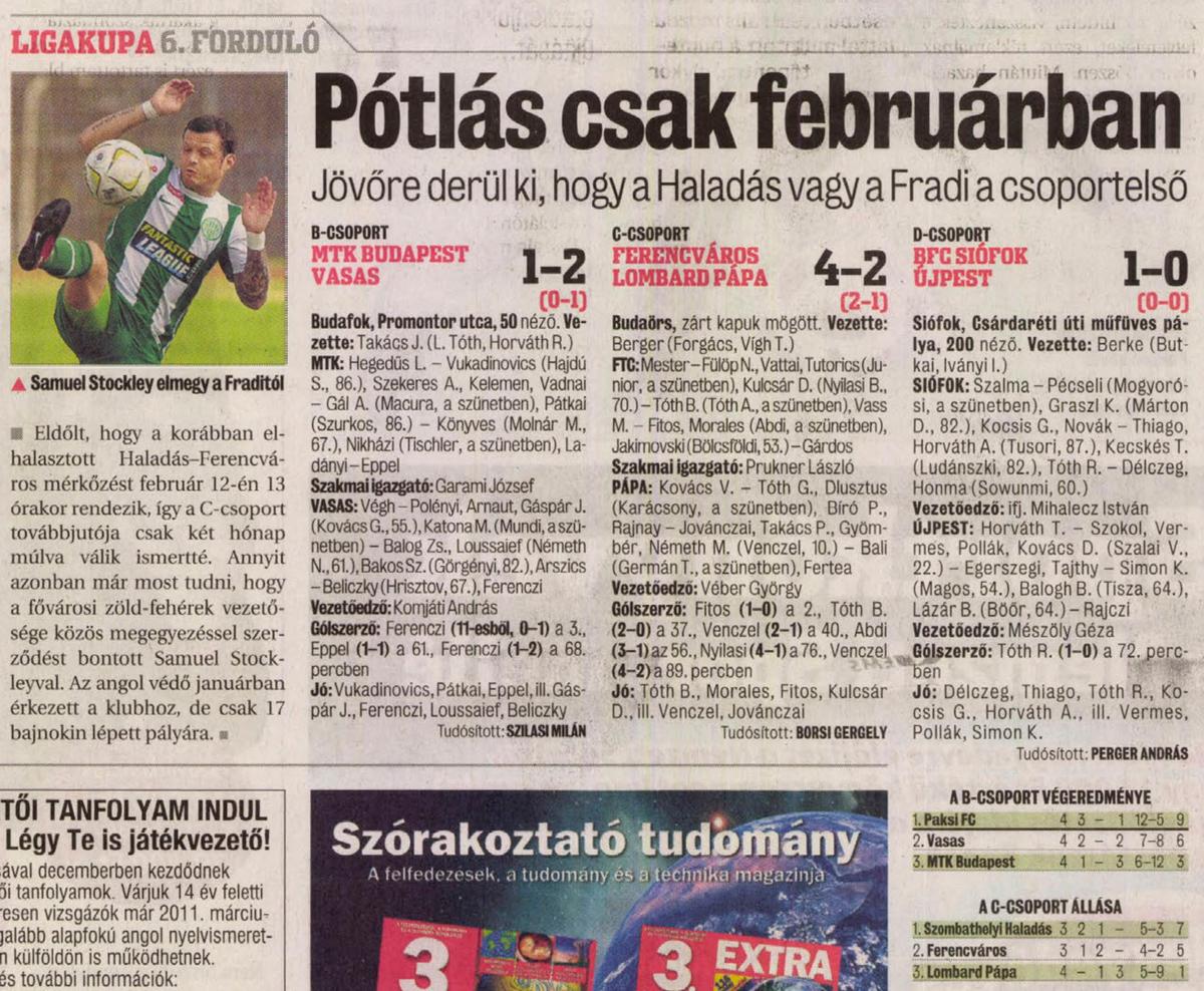 2010.XII.8. LK, Ferencváros – Pápa: 4-2