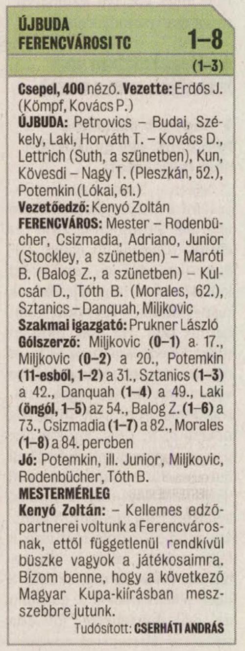 2010.IX.22. MK, Újbuda – Ferencváros: 1-8