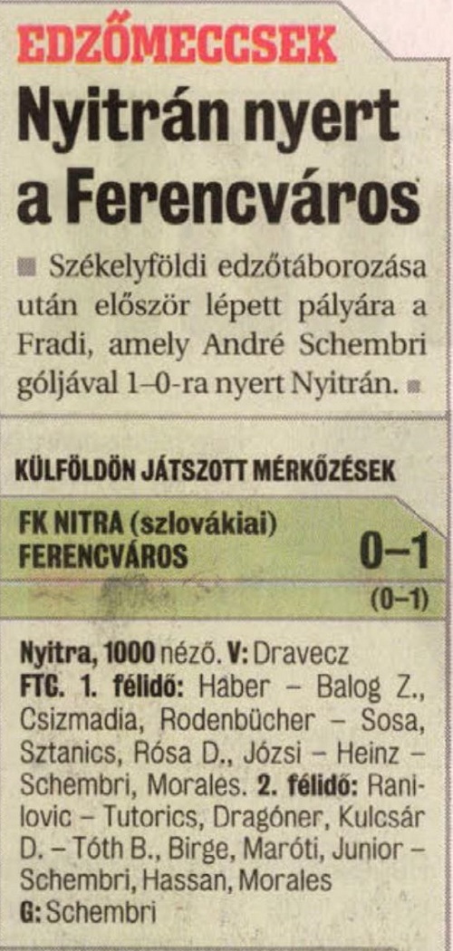 Csapatunk idei harmadik előkészületi mérkőzését is megnyerte, Schembri góljával 1-0-ra vertük a szlovákiai Nyitrát.