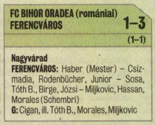 (A Ferencváros és az FC Bihor hivatalos honlapja valamint üllői129.hu alapján)
