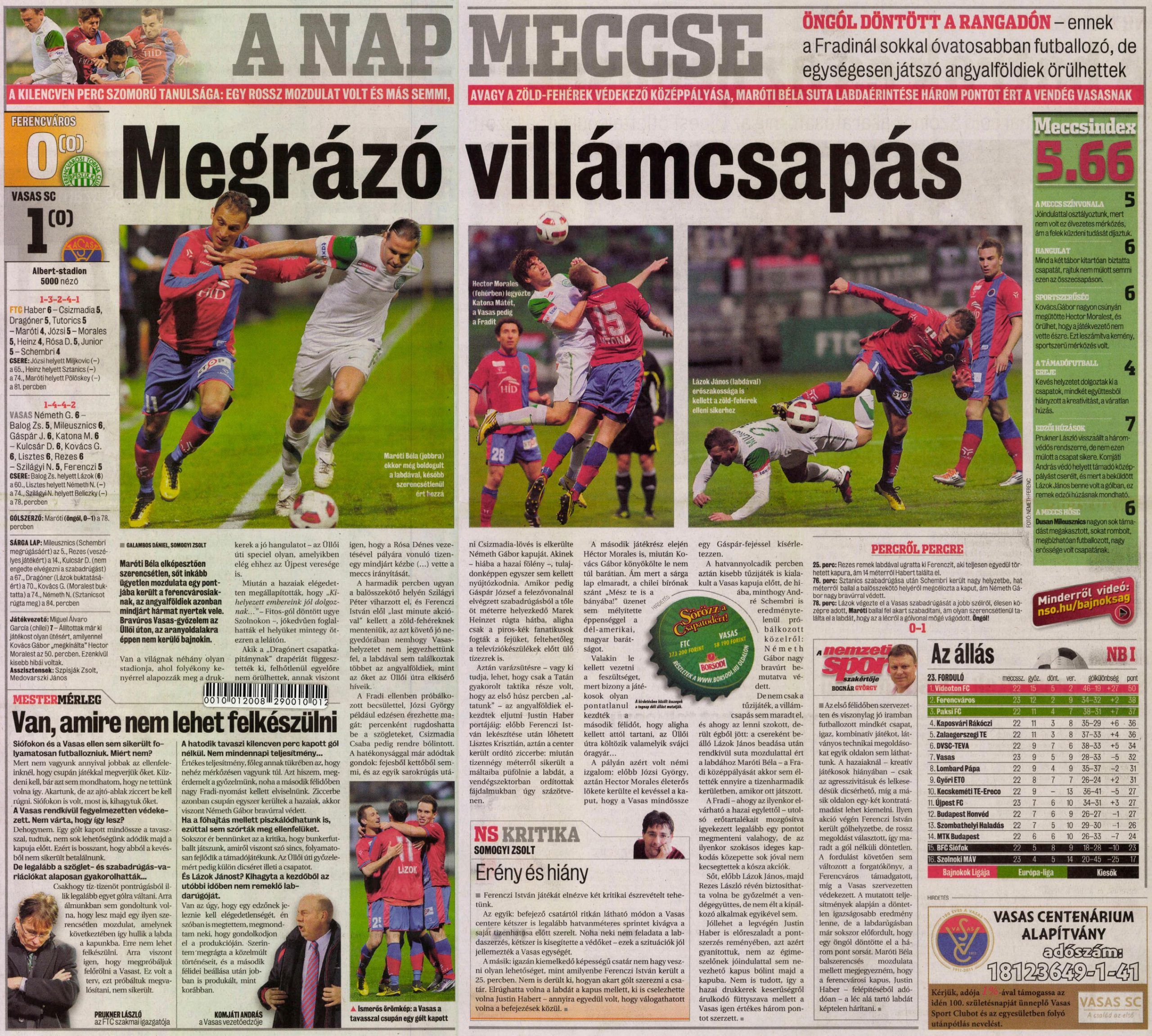 A labdarúgó NB I 23. fordulójának fővárosi derbijén a Vasas Maróti Béla szerencsétlen mozdulatát követő öngóljával 1–0-ra legyőzte idegenben a Ferencvárost.