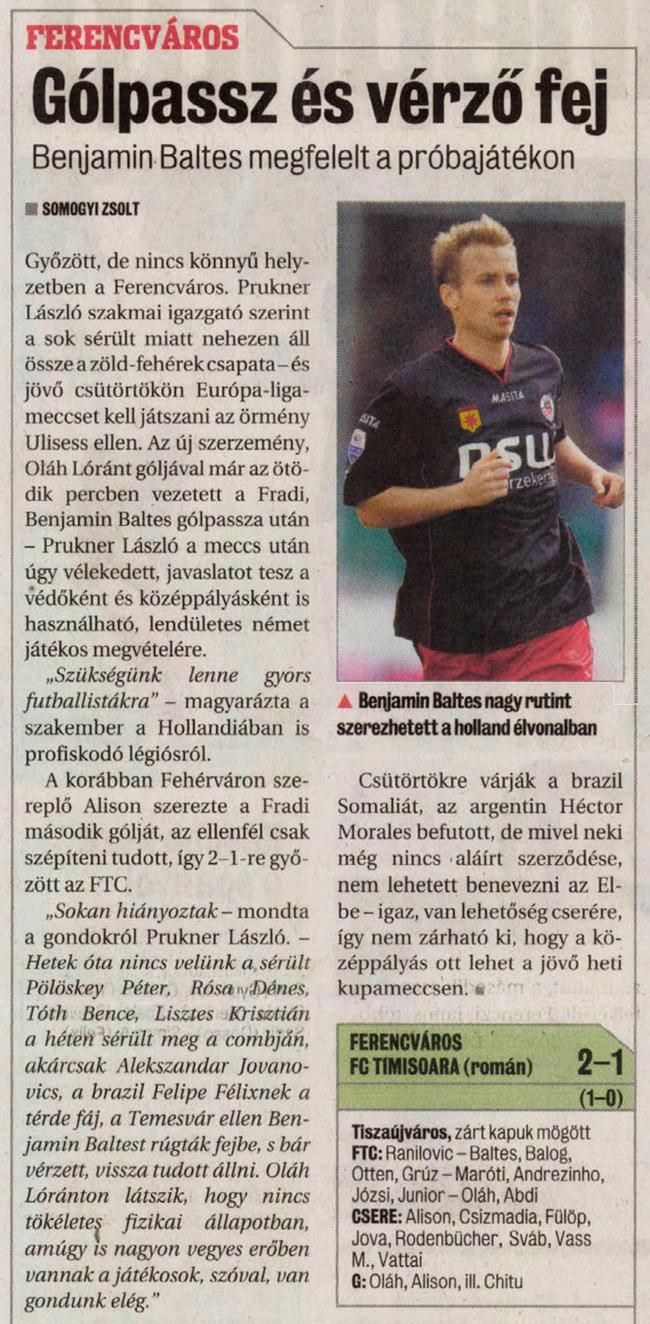 2011.VI.22. Ferencváros – Politechnika Timisoara: 2-1