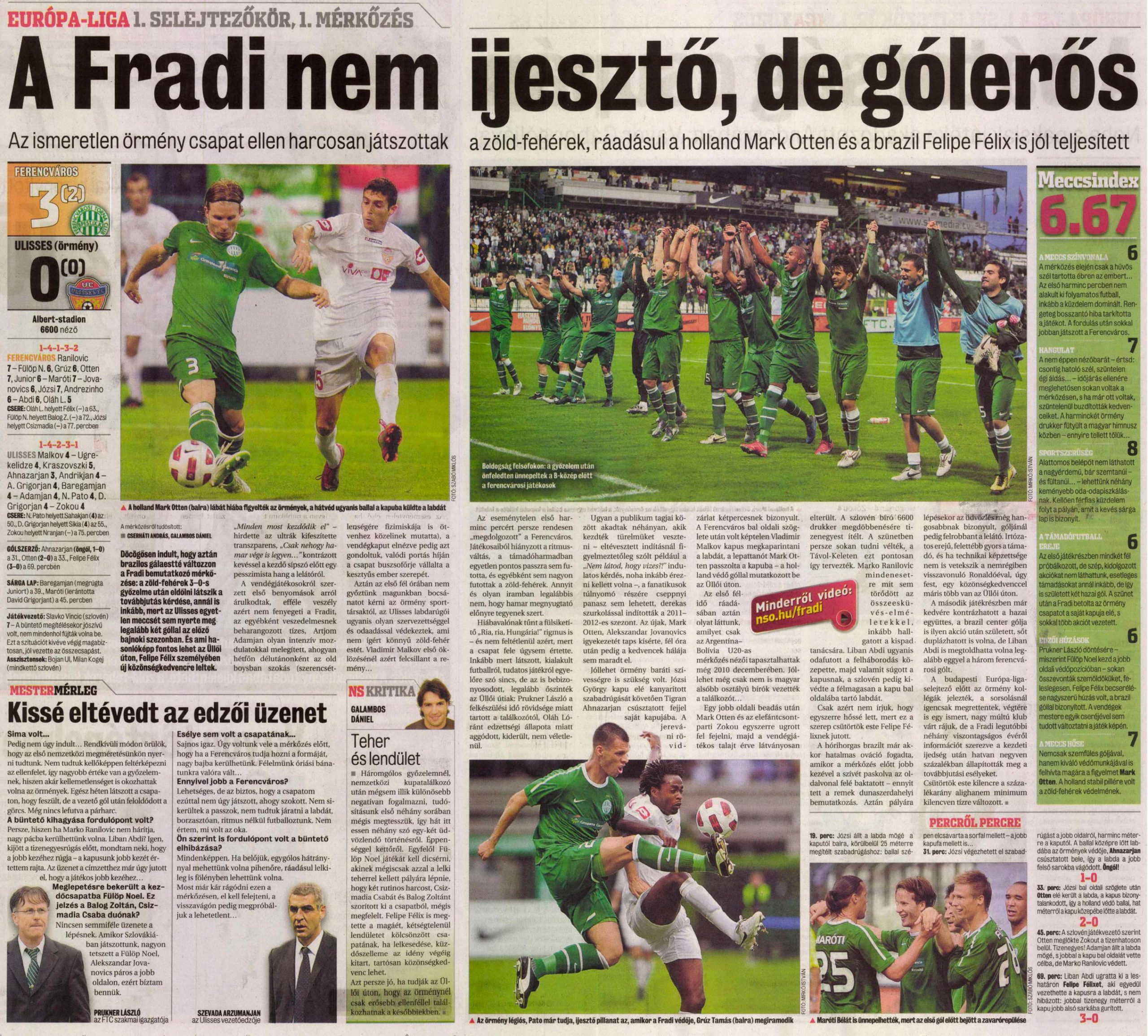 2011.VI.30. EL selejtező, Ferencváros – Ulisses: 3-0