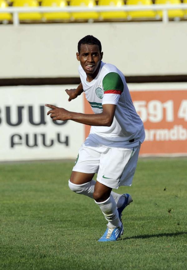 egy ígéretes kiugrása, de az Andrezinhótól kapott labdát rosszul vette át, így nem tudott lőni. Az örmények a mezőnyben aktívabbak voltak ugyan, ám még ennyi veszélyt sem jelentettek a magyar csapat kapujára 15 perc elteltével. Az egyetlen lehetőség Fabrice Zokou előtt adódhatott volna, de a partjelző lesen állította meg az elefántcsontparti csatárt. A 39 fokos meleg rányomta bélyeget a gyenge iramú meccsre, a 23. percben ivószünetet tartottak a nagy hőségben. A pihenő után Dzsika lövésével a hazaiak veszélyeztettek (fölé szállt a kísérlet), ám nem sokkal később a Ferencváros megszerezte a vezetést Liban Abdi tizenegyesgóljával. Az örmények védője, Hahnazarjan a jobb szélen előretörő Felipe Félixszel szabálytalankodott a tizenhatoson belül, s a büntetőt Abdi a jobb sarokba lőtte. 0–1. A gól után még inkább visszaesett a hazaiak addig sem túl veszélyes támadójátéka, Andrezinho távoli lövésével ismét a Ferencváros veszélyeztetett – Vlagyimir Malkov a kapu fölé tolta a labdát.