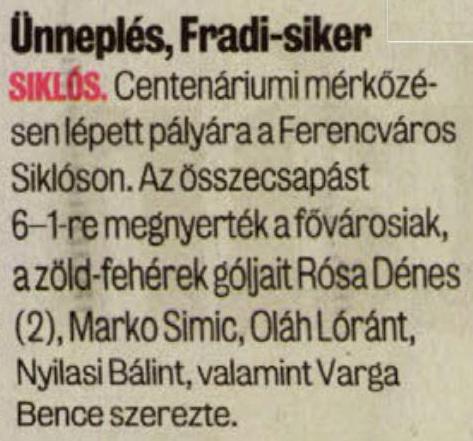 Ahogy várni lehetett, nagy sikert aratott az NB I-es Ferencváros labdarúgócsapatának vendégjátéka, 700-an voltak kíváncsiak a hírverő mérkőzésre, amelyet a vendég zöld-fehérek a házigazda Thermal-Spa Siklós FC ellen 6-1-re megnyertek.