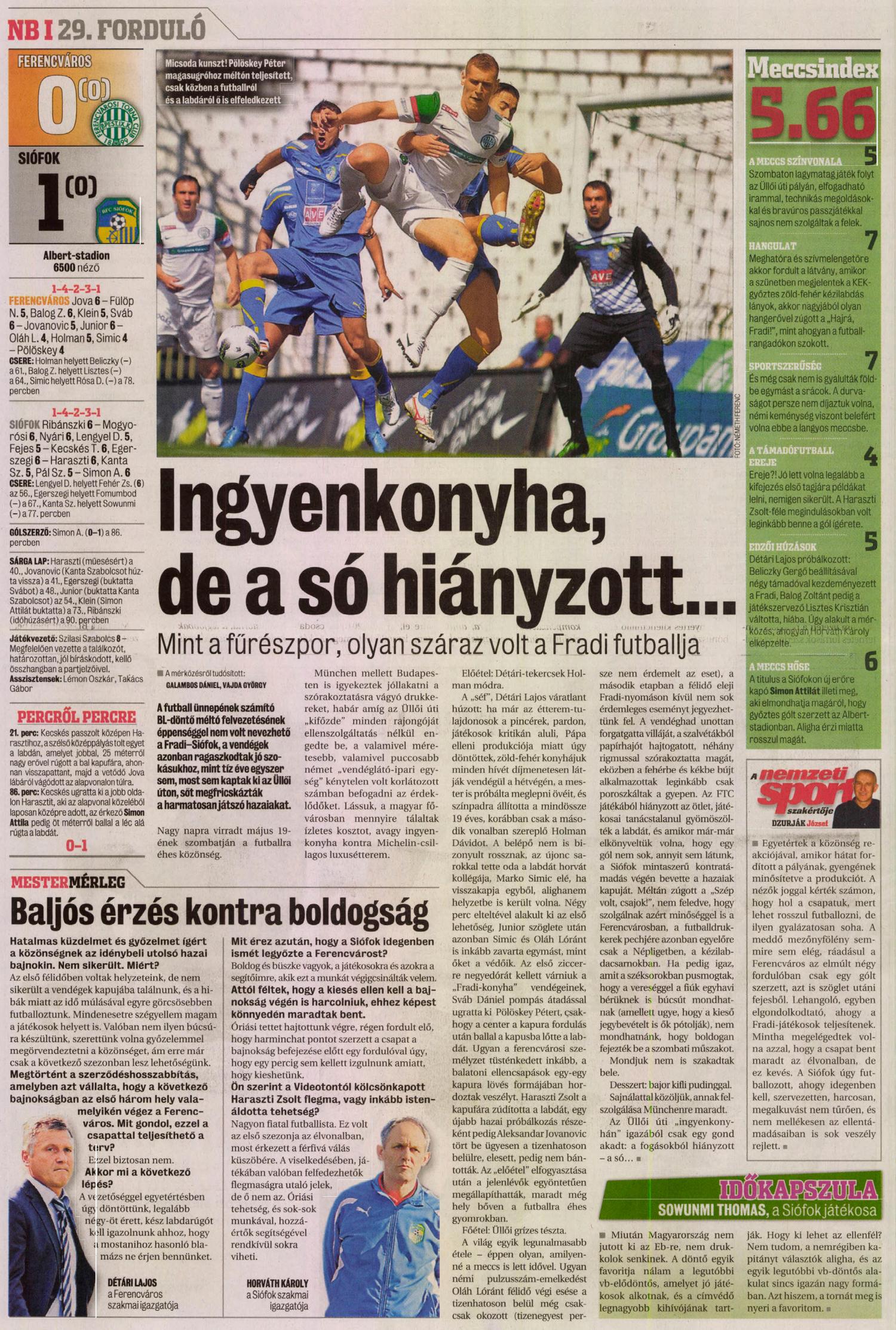 A labdarúgó NB I 29., utolsó előtti fordulójában a Ferencváros a Siófokot fogadta, és egygólos vereséget szenvedett ellenfelétől.