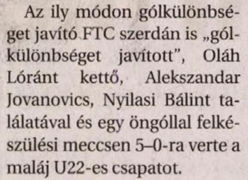 2012.V.23. Ferencváros – Malajzia U22-es válogatott: 5-0