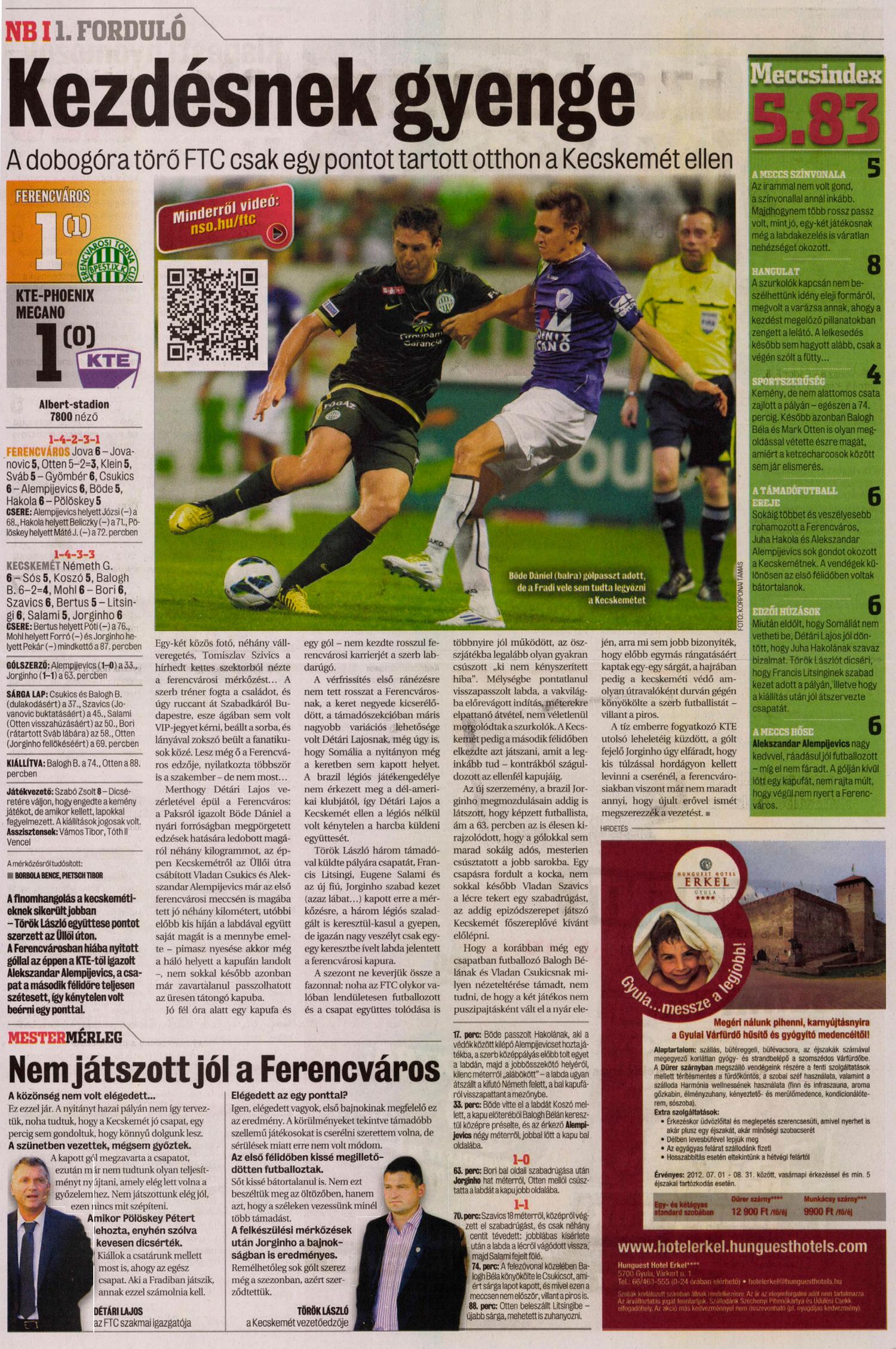 2012.VII.28. Ferencváros – Kecskeméti TE: 1-1