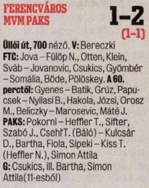 (A Ferencváros, a Paks hivatalos honlapja, a pepsifoci.hu és az nso.hu alapján)