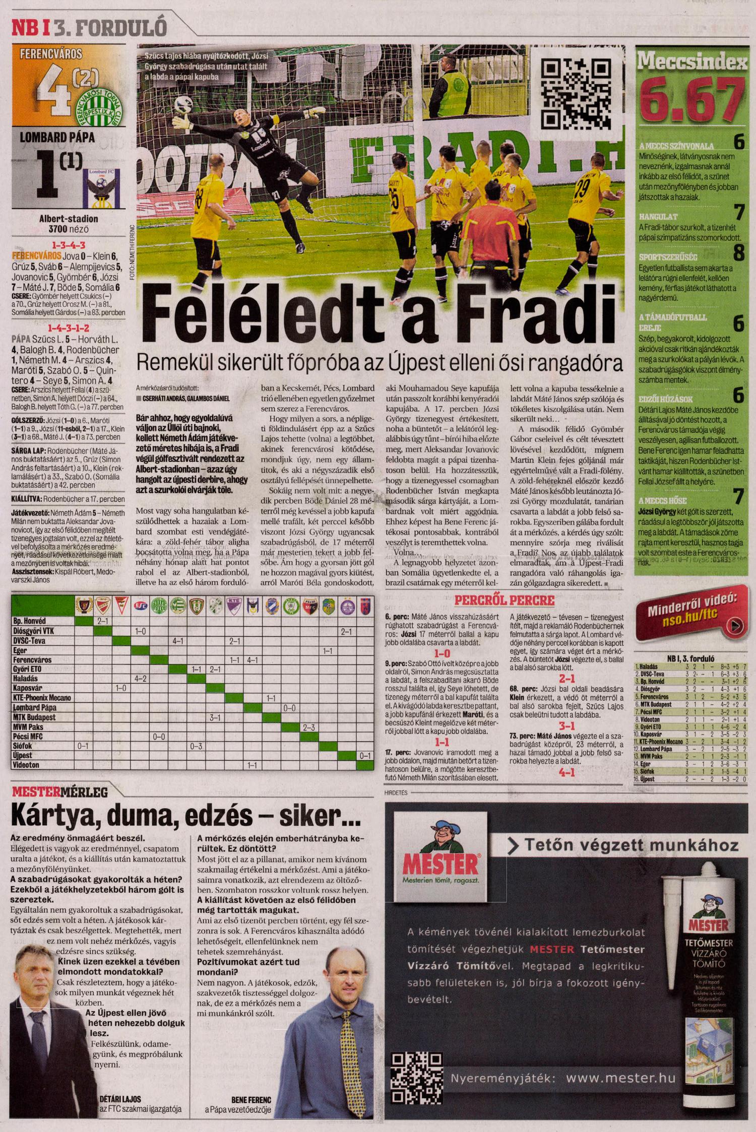 (Az nso.hu, az nb1.hu, a pepsifoci.hu, a Sport TV, a Ferencváros és a Pápa hivatalos honlapja, valamint az MLSZ adatbankja alapján, fotók: Lendvai Róbert, képgaléria: focinews.com)