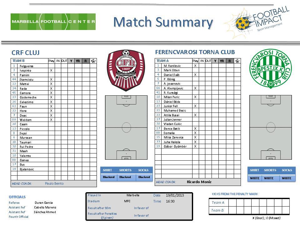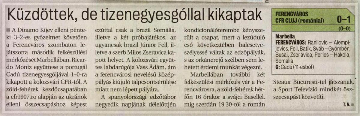 (A Ferencváros, a CFR Cluj és a Marbella Football Center hivatalos honlapja valamint a csakfoci.hu, az nso.hu és a prosport.ro alapján)