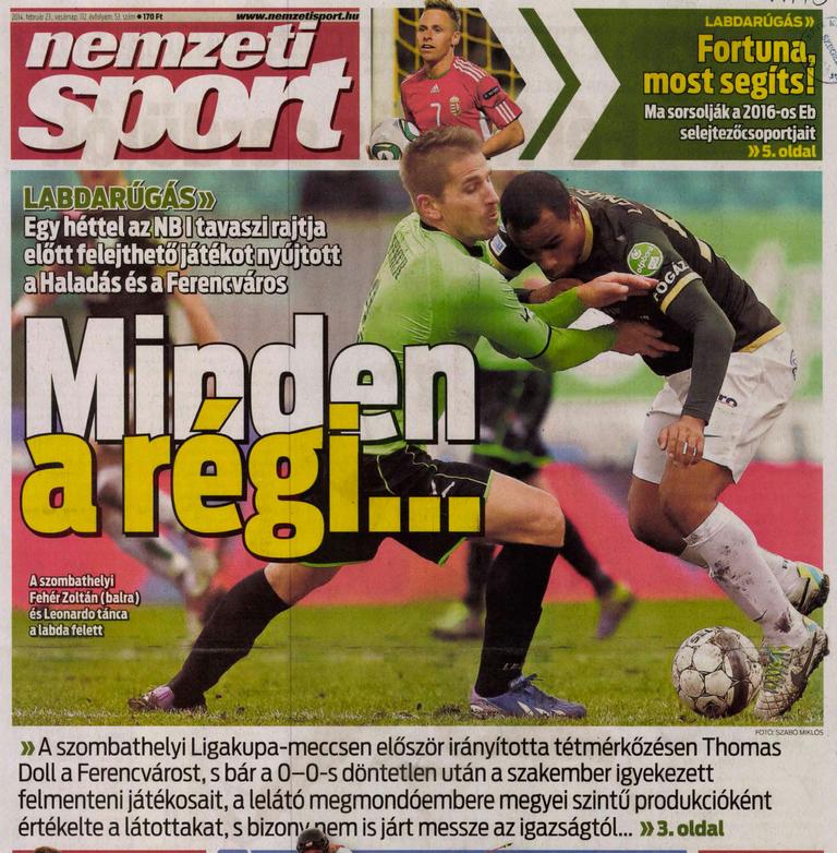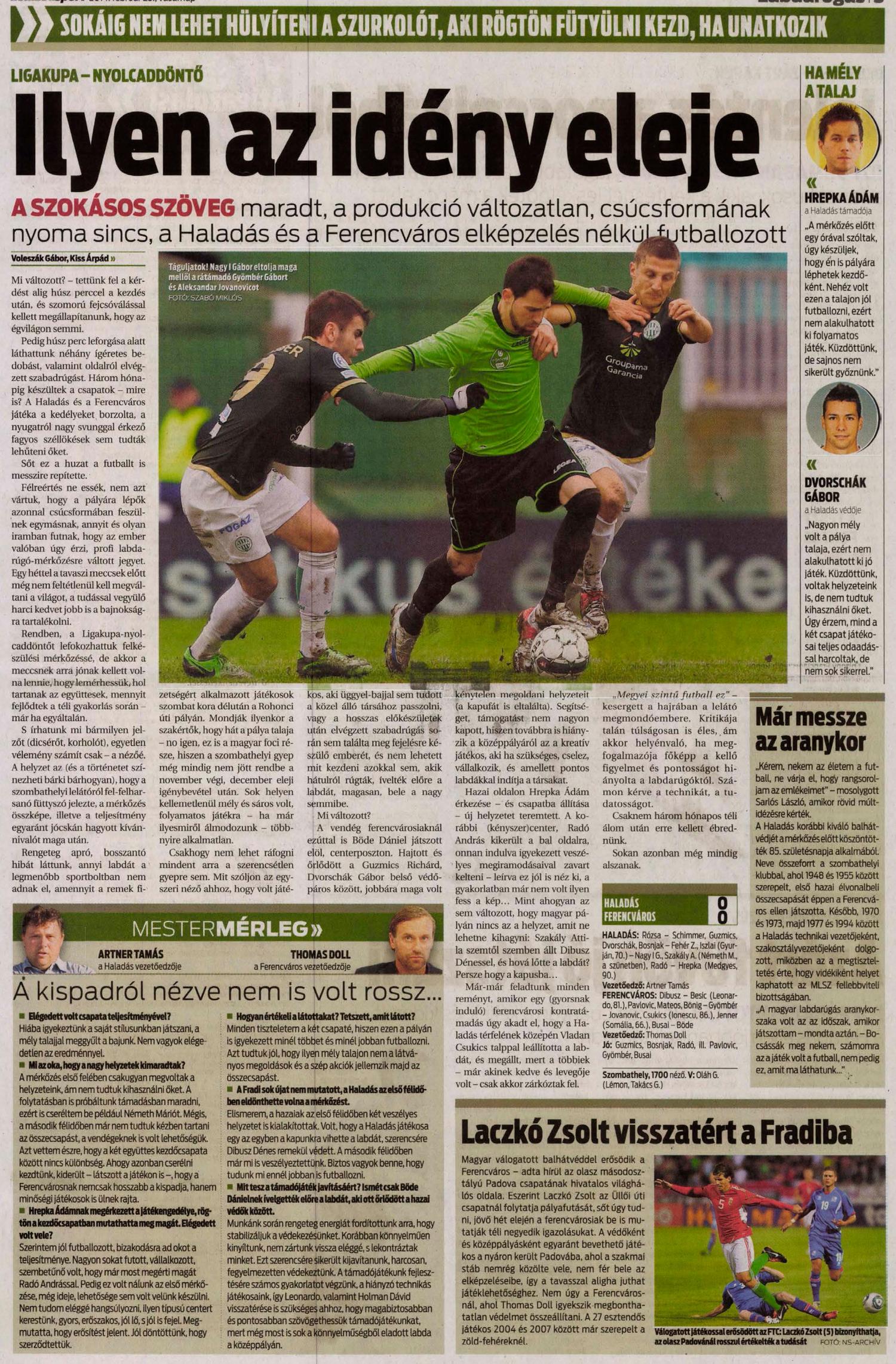 A Haladás hazai pályán 0–0-s döntetlent játszott a Ferencvárossal a labdarúgó Ligakupa nyolcaddöntőjének első mérkőzésén. Ez volt Thomas Doll első tétmérkőzése a Fradi kispadján.