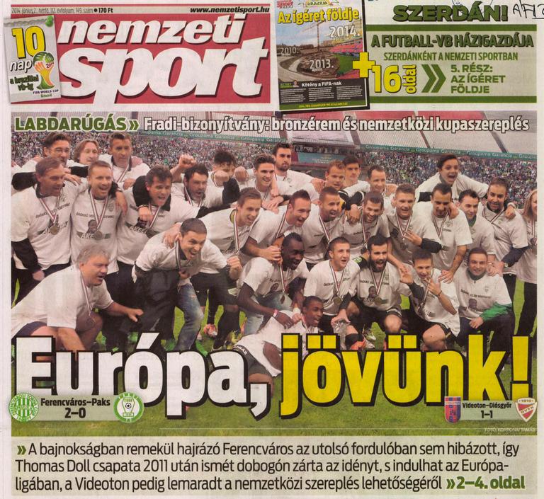 A Paks hazai legyőzésével a dobogó harmadik fokán végzett a Fradi, és bejutott az Európa-ligába.