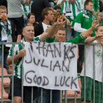 Nem, nem tévedés a sokat szidott Fradi tábor nagy része állva és tapssal búcsúcsot a nemes ellenféltől.