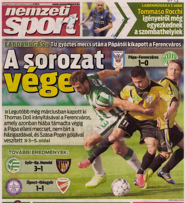 2014.VIII.3. Pápa – Ferencváros: 1-0