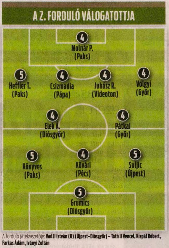 Pápa: Szűcs L. – Csizmadia, Jagodics, Bogunovic, Tóth G., Frizoni (Faggyas 55.) – Sluka, Csilus T., Zulevs – Kenesei (Waltner 70.), Popin (Nagy T. 83.)