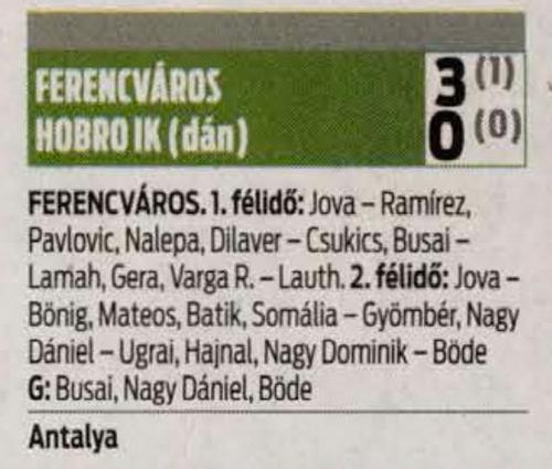 Ferencváros – Hobro IK: 3-0 (1-0)