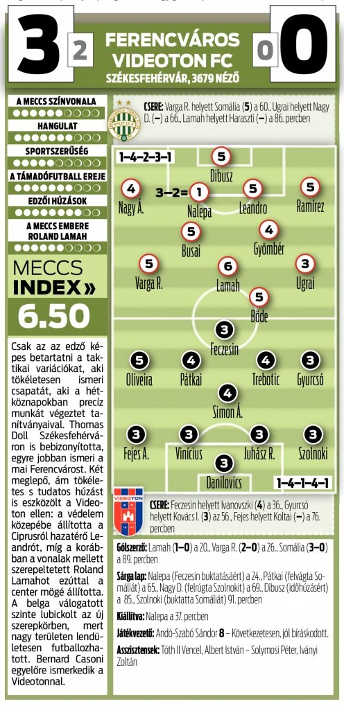 3 ILYEN eredmény kell az idei bajnokságban a Videoton ellen.