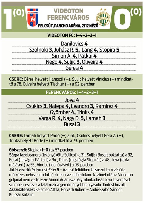 (A Nemzeti Sport, az nso.hu, a Ferencváros és a Videoton hivatalos honlapja valamint az MLSZ Adatbankja alapján)