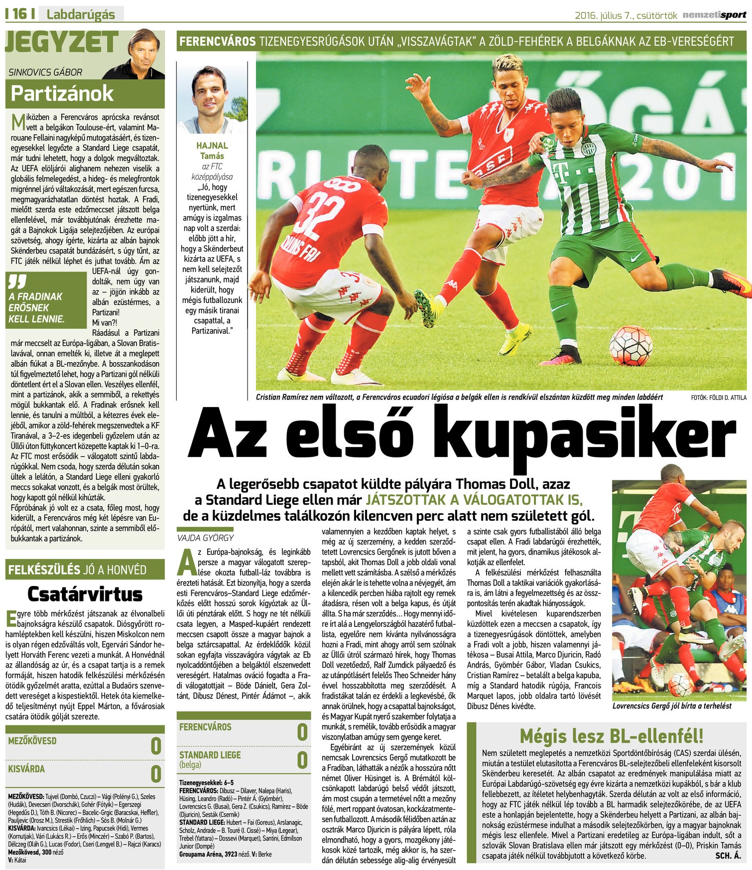 (A Nemzeti Sport, az nso.hu, a Ferencváros és a Standard Liege hivatalos honlapja alapján)