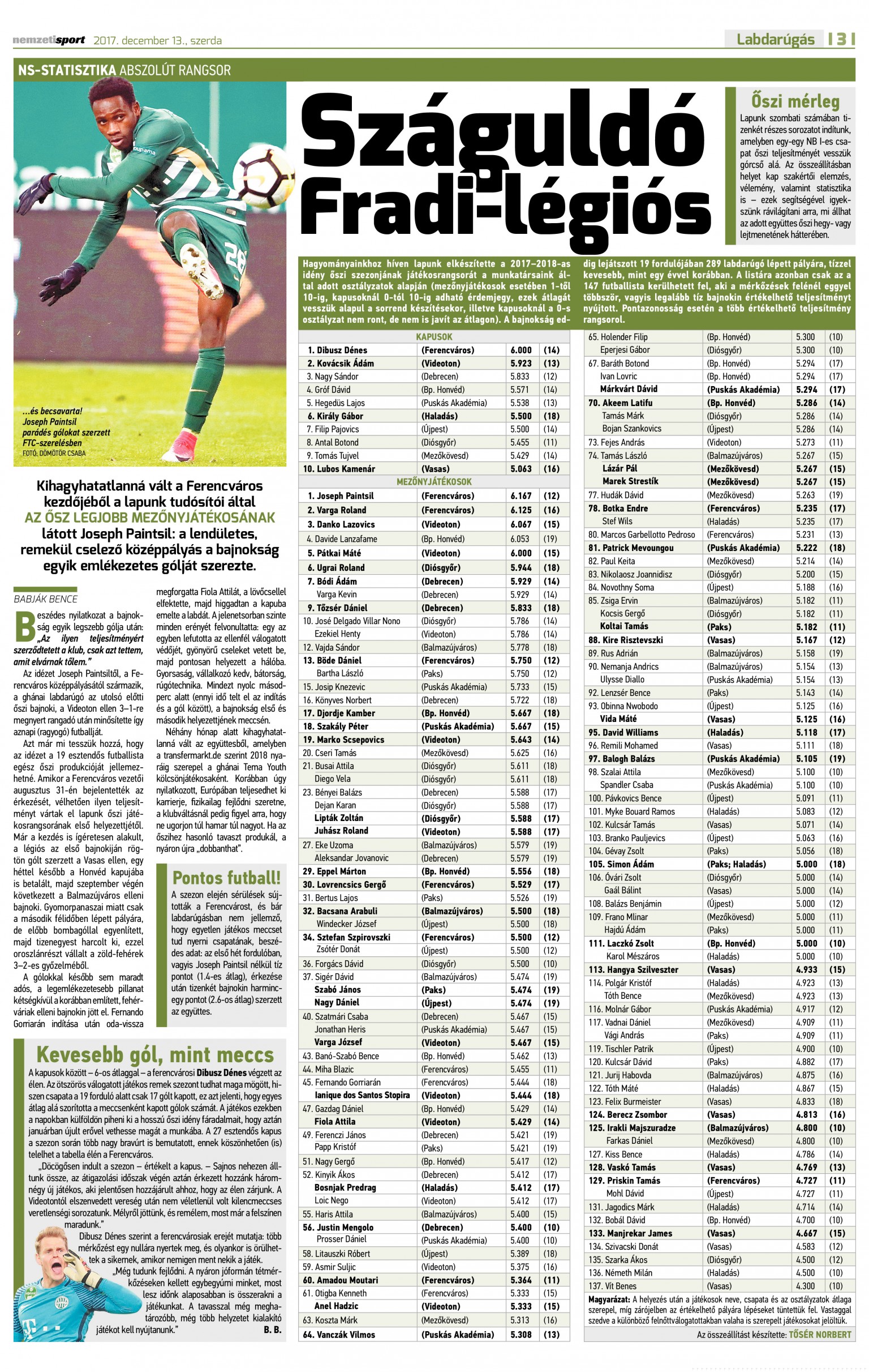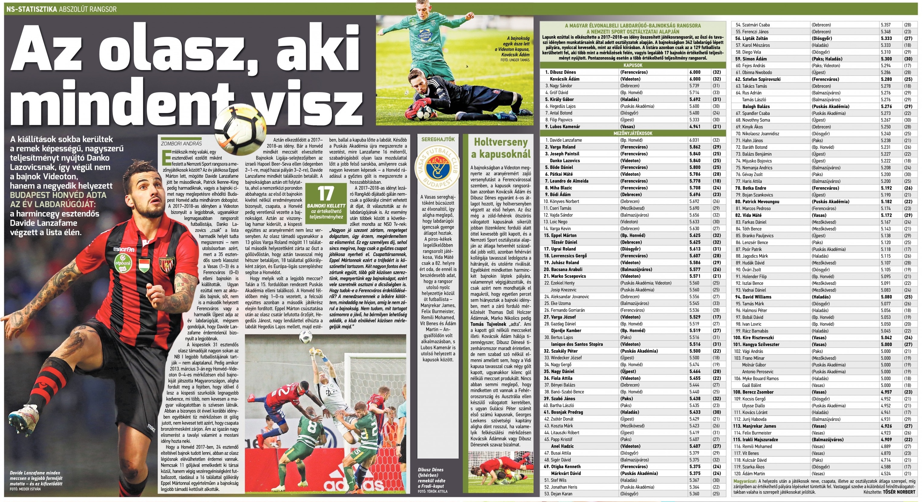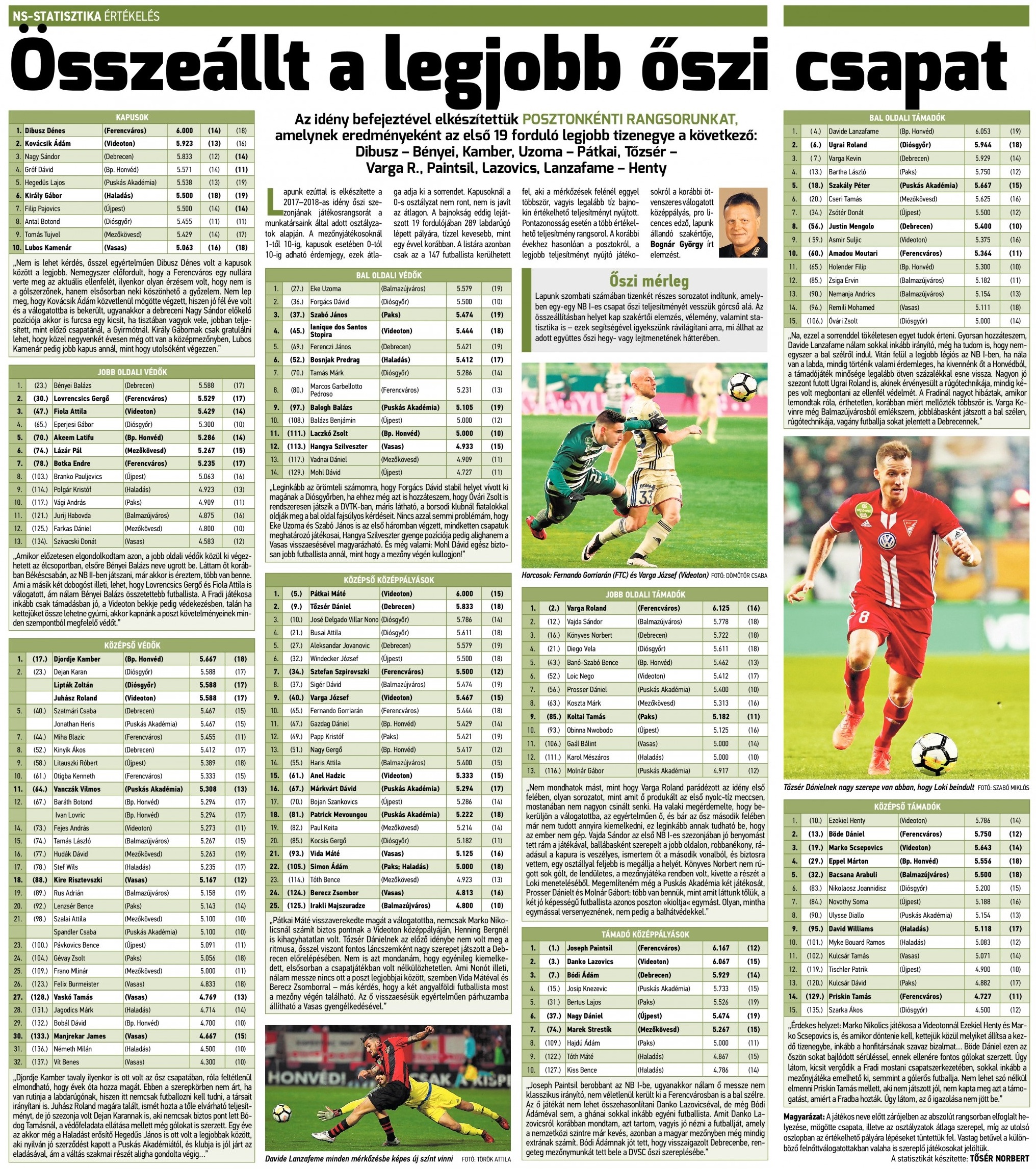 2017/18: Játékosrangsor Közzétéve: 2018. június 6. szerda | Szerző: K@rcsi Lanzafame a játékosranglista élén — Dibusz és Kovácsik (Videoton) holtversenyben végzett az élen a kapusoknál 2017 ősz: Paintsil az NB I-es ranglista élén — Dibusz a legjobb kapus 2017 Ősz: Vélemény, hozzászólás? Válasz megszakításaAz e-mail címet nem tesszük közzé. A kötelező mezőket * karakterrel jelöltük Hozzászólás * Név * E-mail cím * Honlap Δ