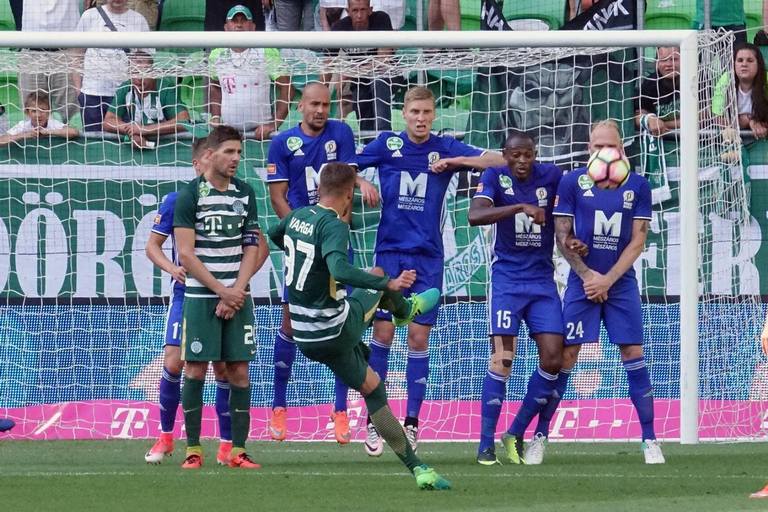 Most Gera volt az „áldozat”, az „elkövető” pedig Mevoungou, így a kaputól 30 méterre, kissé jobbról jutott szabadrúgáshoz a Fradi.