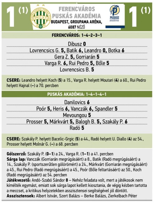 (A Nemzeti Sport, az nso.hu, a Ferencváros és a Puskás Akadémia hivatalos honlapja valamint az MLSZ Adatbankja alapján)