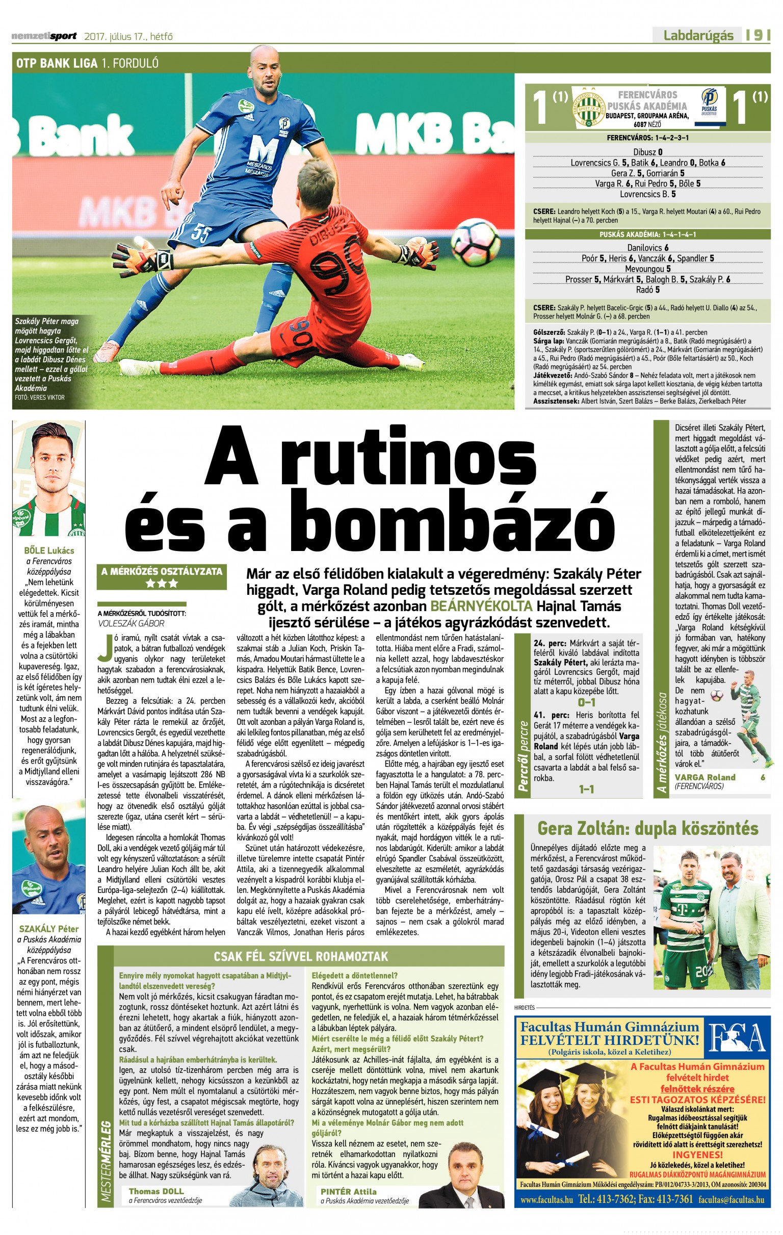 2017.VII.16. Ferencváros – Puskás Akadémia: 1-1