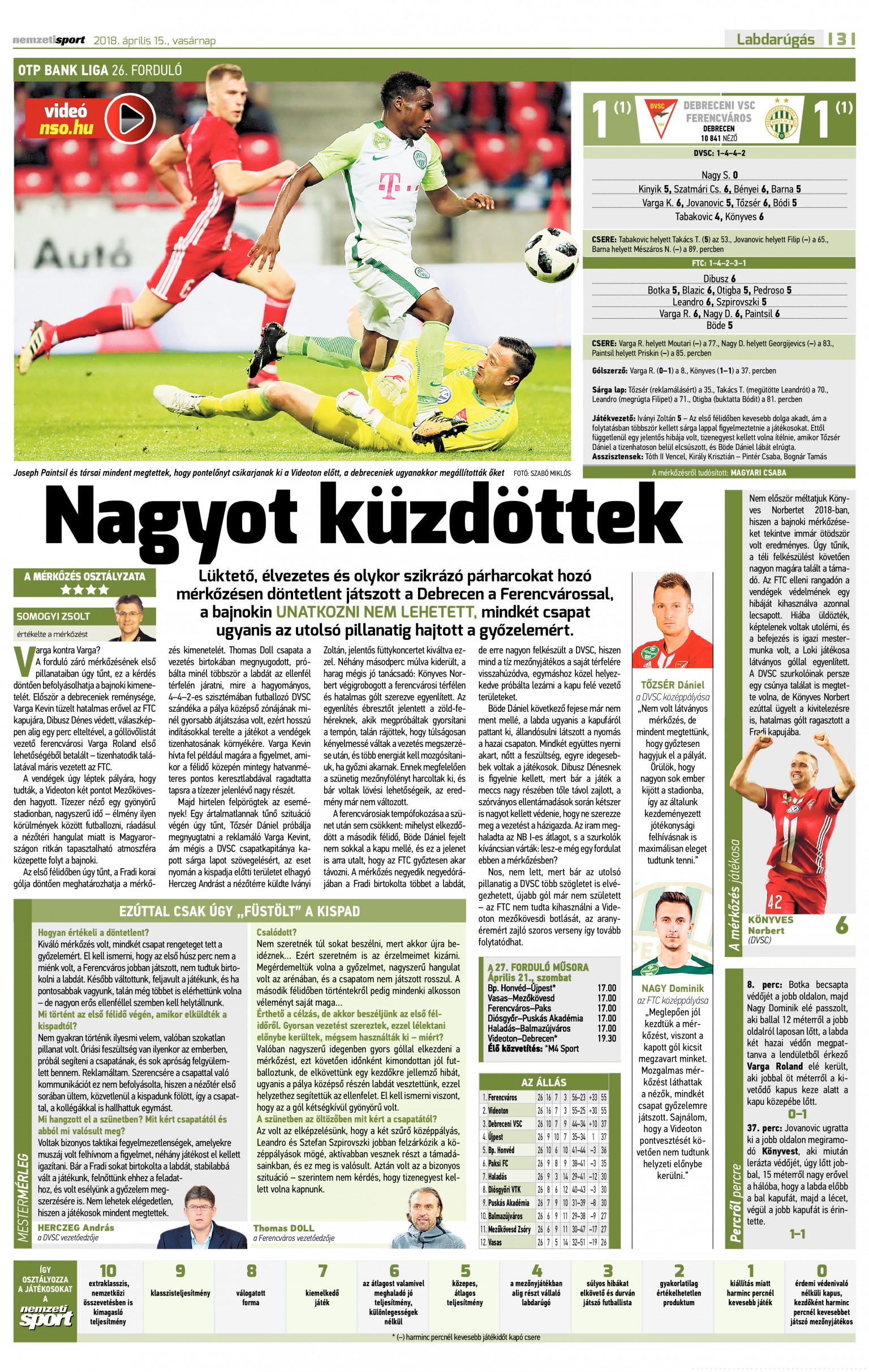 2018.IV.14. DVSC – Ferencváros: 1-1