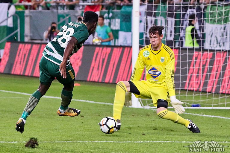 GÓÓÓL!!! EGYENLíTETT AZ FTC! Böde ugratta ki remek ütemben Joseph Paintsilt, aki két igazítás után kissé jobbról, öt méterről a kapus lábai között a hálóba küldte a labdát. (1–1)