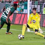 Bajnoki aranyéremre pályázó csapat nem engedheti magának a kényelmes kezdés luxusát, elképzelhetjük, mi történik majd akkor, ha a nemzetközi színtéren, egy erősebb európai együttes ellen hibáznak ennyit a zöld-fehérek… Az ellenfél ezúttal a magyar mezőnyben a kiesés elől menekülő szombathelyi együttes volt, így a kezdeti sokk után szépen lassan átvette a játék irányítását a hazai csapat. Lovrencsics Gergőék, ha nem is egyre másra, de elkezdték kialakítani a helyzeteket, és érezhető volt, nagyon nem szeretnének hátránnyal a szünetre vonulni. Böde Dániel egymaga lőhetett volna kettőt, a góllövőlistát vezető Varga Roland is betalálhatott volna, ám végül Joseph Paintsil egyenlített (1–1).