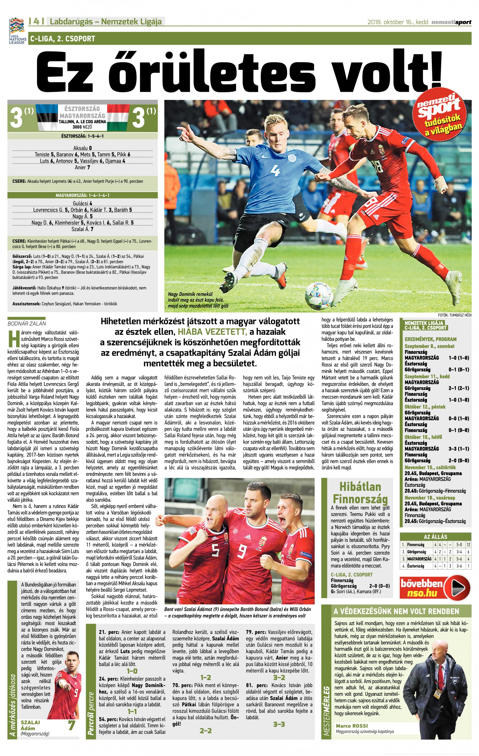 2018.X.15. Nemzetek Ligája, Észtország – Magyarország: 3-3