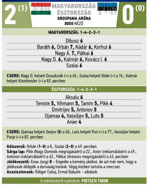 MAGYARORSZÁG — ÉSZTORSZÁG 2-0 (1-0)