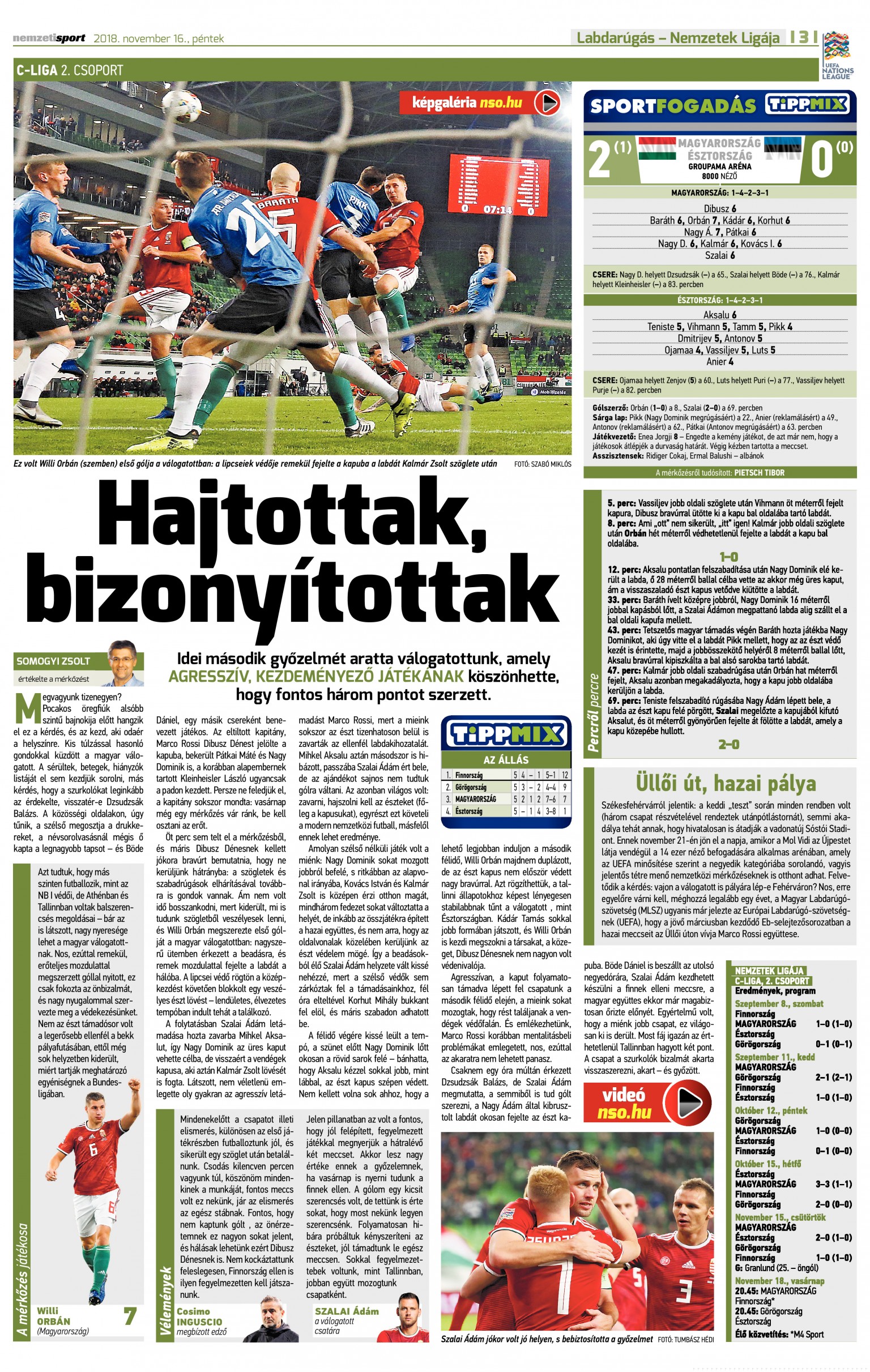 2018.XI.15. Nemzetek Ligája, Magyarország – Észtország: 2-0