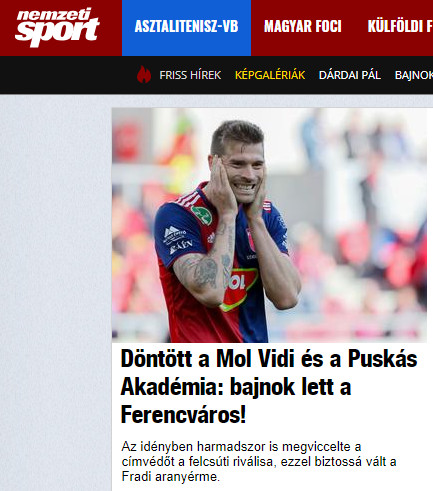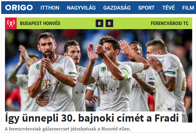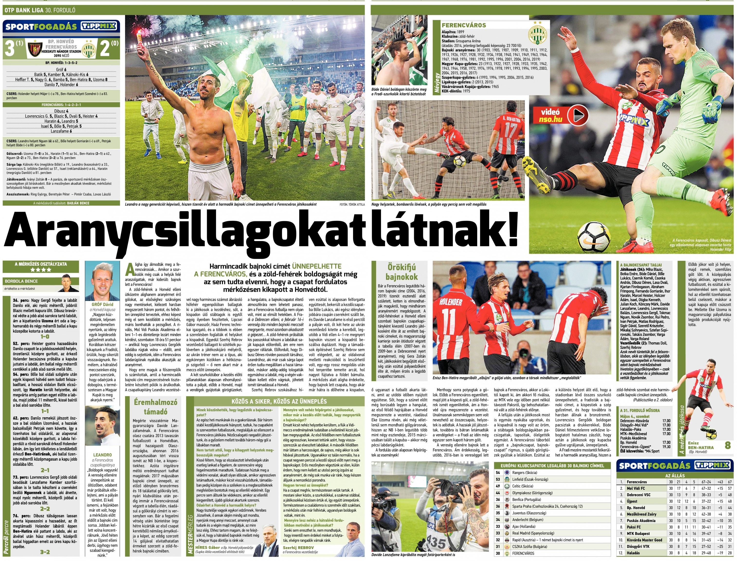 A zöld-fehérek a Honvéd elleni ütközetre alighanem aranyérmet érő gólokat, az elsőséghez szükséges nagy mentéseket, kiélezett harcban megszerzett három pontot és felhőtlen ünneplést terveztek, ehhez képest még el sem kezdődött a mérkőzés, máris bonthatták a pezsgőket. A rivális Mol Vidi Puskás Akadémia elleni 1–1-es döntetlenje lezárt minden kérdést, szombat 18 óra 51 perckor – anélkül, hogy Lovrencsics Gergőék labdába rúgtak volna – eldőlt, amit eddig is sejtettünk, idén a Ferencváros labdarúgóinak nyakába akasztják a bajnoki aranyérmet.