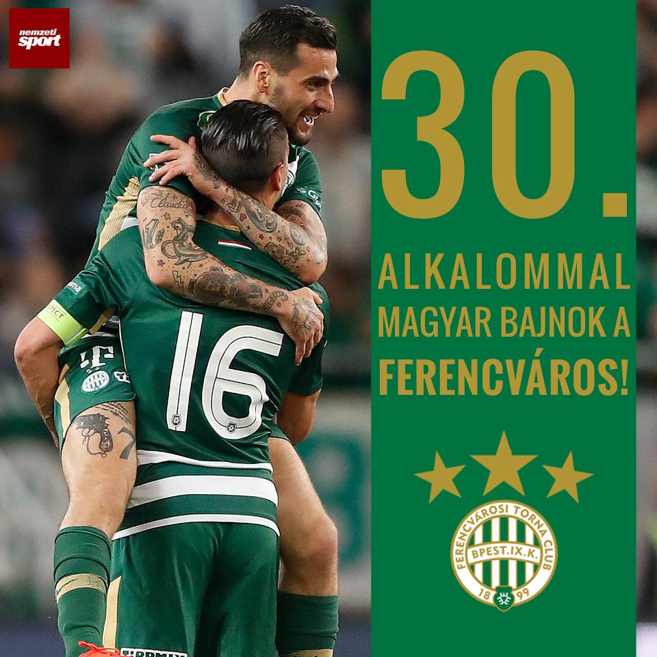 A Ferencváros megszerezte a 30. bajnoki aranyérmét a labdarúgó NB I-ben, ezzel tizenharmadik európai csapatként csatlakozott a legalább harmincszoros bajnokok táborához. A legtöbb bajnoki címmel büszkélkedő európai klub a skót Rangers, 54 elsőséggel.