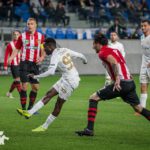 Nguen labdát szerez, Isael meg jobbal 21-ről a bal sarok mellé lő.
